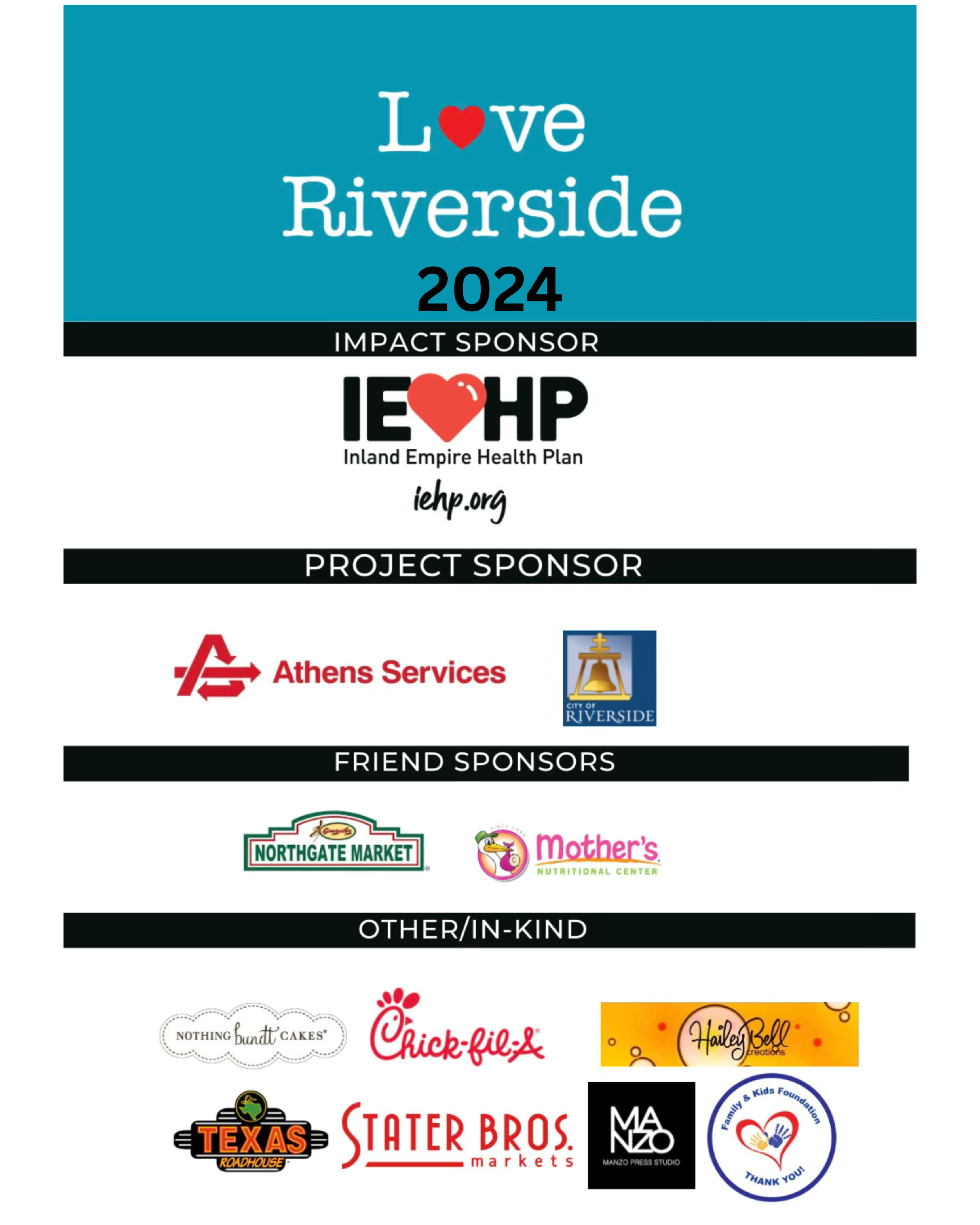 For Sponsorships and Donations (501c3 - tax-deductible*), please make check payable to LOVE RIVERSIDE and mail to: